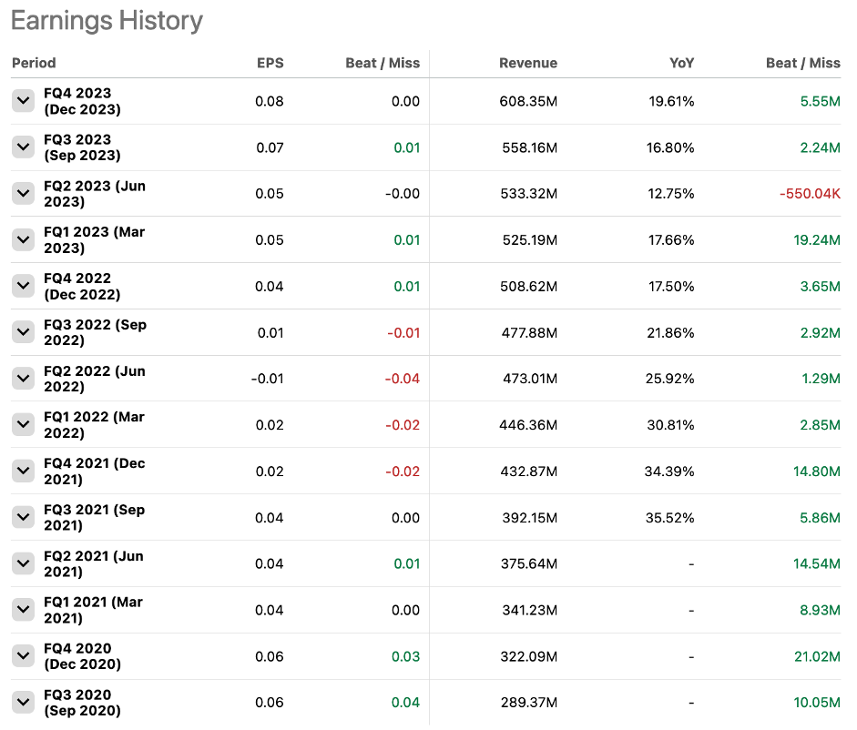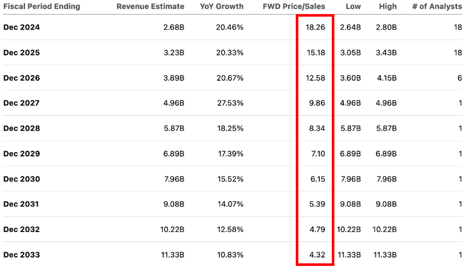 While revenue growth has slowed down for several quarters in the recent past, the company is trending upwards again since Q3 2023 and has a history of beating their own guidance. Given the recent developments since the launch of AIP Bootcamps, I am assuming this trend to continue for the foreseeable future, further accelerating the company into full growth mode again.