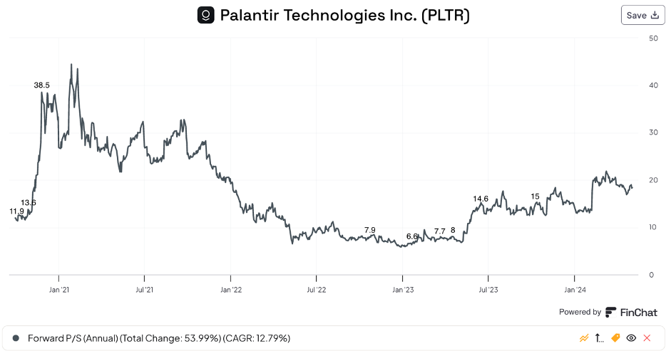 When looking at how the market is pricing Palantir, it is trading at a forward Price-to-sales ratio of 18.4. Down substantially from its 2021 levels, but still not cheap by any measure. Snowflake (ticker: SNOW), while not entirely comparable to Palantir, trades at a P/S (fwd) ratio of 15.2, which still isn’t exactly a bargain.