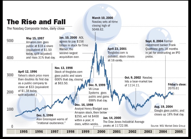Imagine you would have invested in the Nasdaq on March 10, 2000 right at its all-time high of 5048.62. You wake up the next morning and see the market fall. Would you have sold? Probably not - as you wouldn't have known how deep it would fall or how long it would continue to fall. After 2.5 years the Nasdaq would have shrunk to its bear market low of 1114.11, a decline of 77.9%. Had you invested $10,000 on March 10, 2000 all at once, that would have left you with $2,210. It would have taken you until 15 May 2015 to recoup your losses - ~12,5 long years.