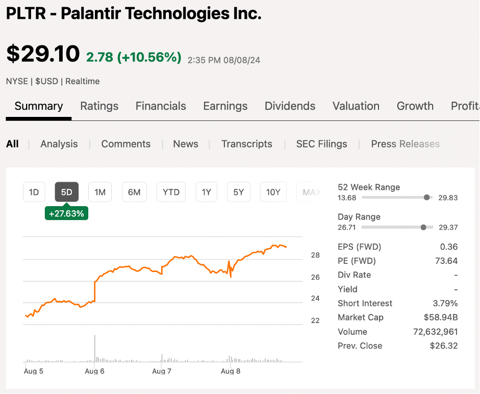 On August 5 Palantir released its Q2 earnings update after hours and the stock shot up since from $24.15 to $29.11 when I started writing this article. That’s a 20.5% increase in less than a week. As I didn’t get around finishing it sooner, the stock has gone up even more since then, to $32.54 as of today. Let’s dive in to see what the company has reported.